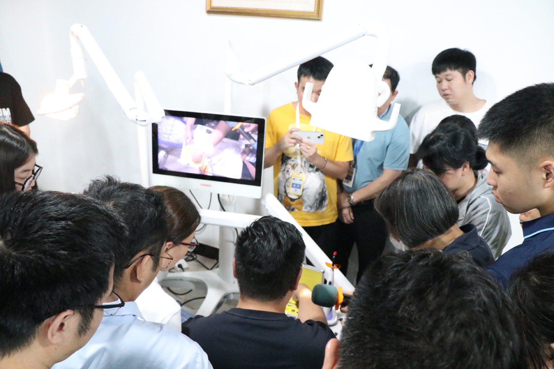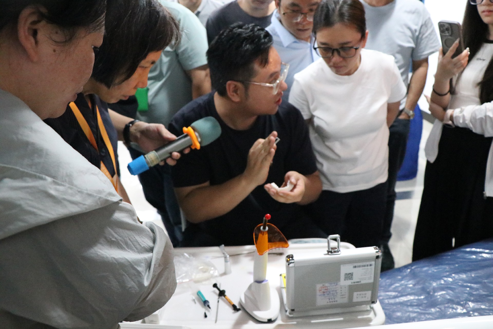 除了理论知识与案例研讨,实操培训同样精彩。孙炳丞讲师现场演示隐形矫治器的精准佩戴、附件粘接技巧以及应对常见问题的方法,学员们在旁认真观摩,随后亲自动手实践,在专业指导下不断纠正和完善操作,切实掌握了关键技能。